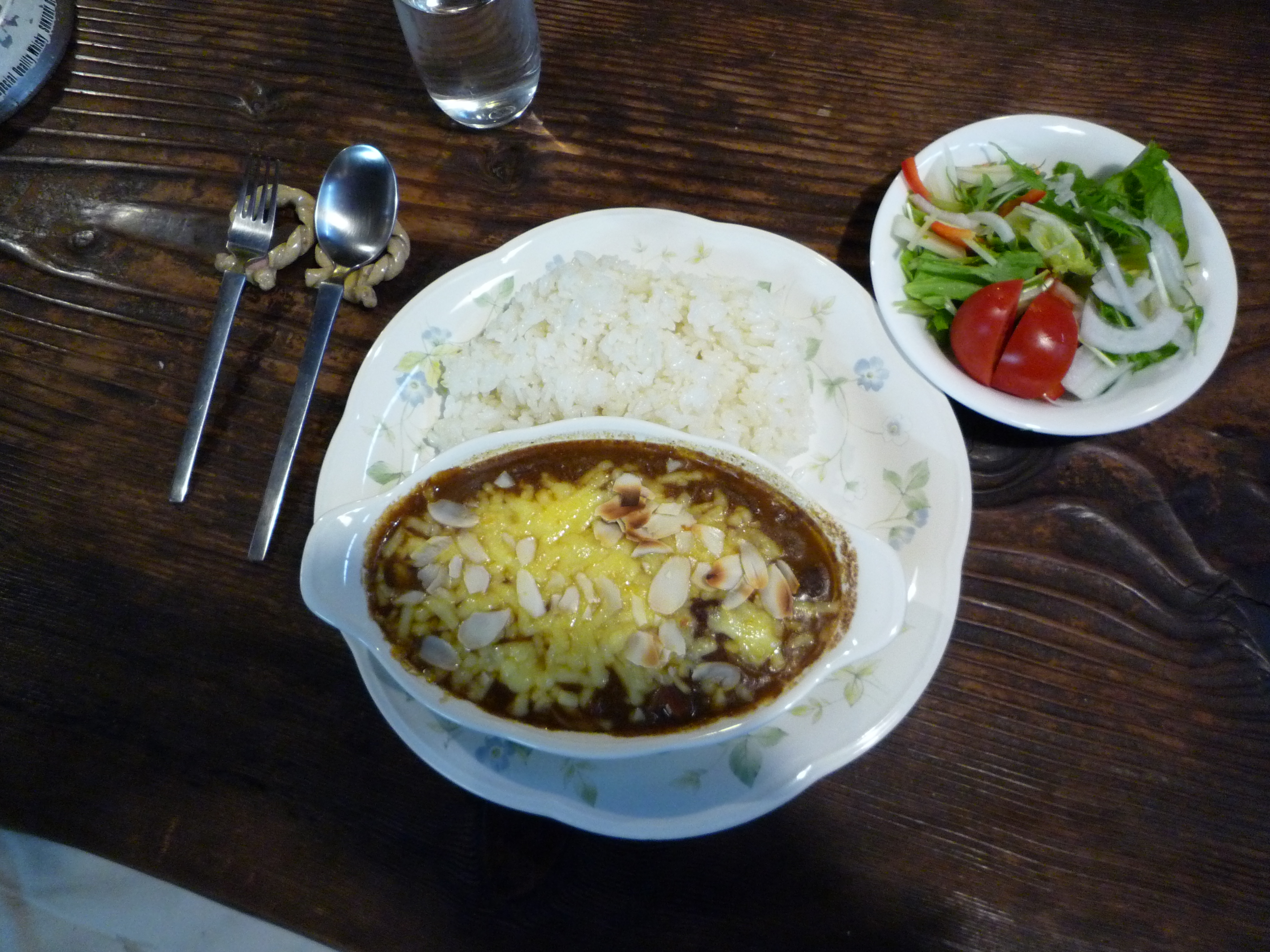 自慢のカレーにチーズとアーモンドスライスをプラスして焼き上げました。