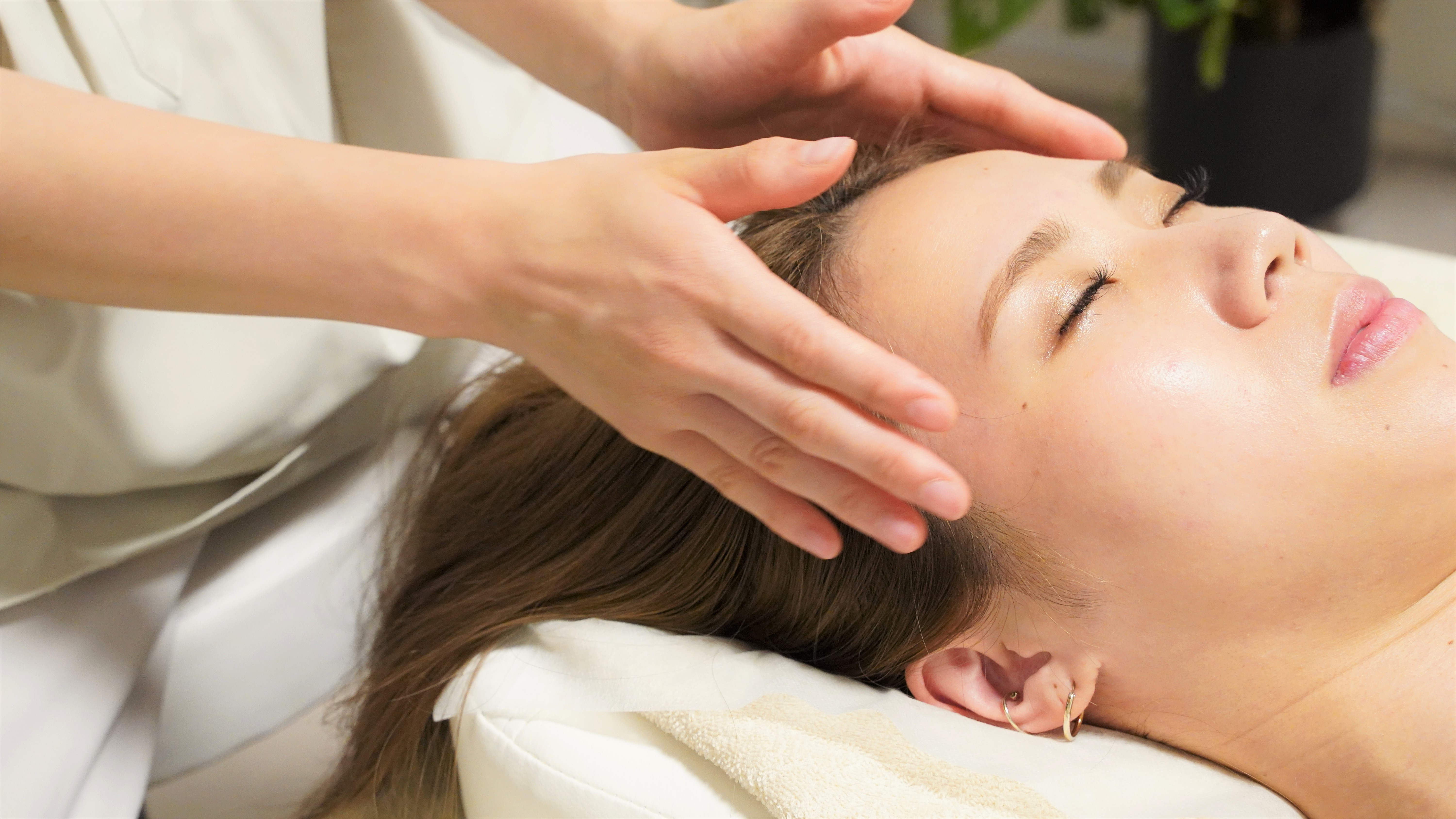 日頃のストレスや疲れからくる自律神経の乱れや眼精疲労・頭痛・頭皮の凝りで悩まれている方に。オールハンドでみっちりほぐす極上ヘッドスパ。一層リラックスしていただけるメニューです。