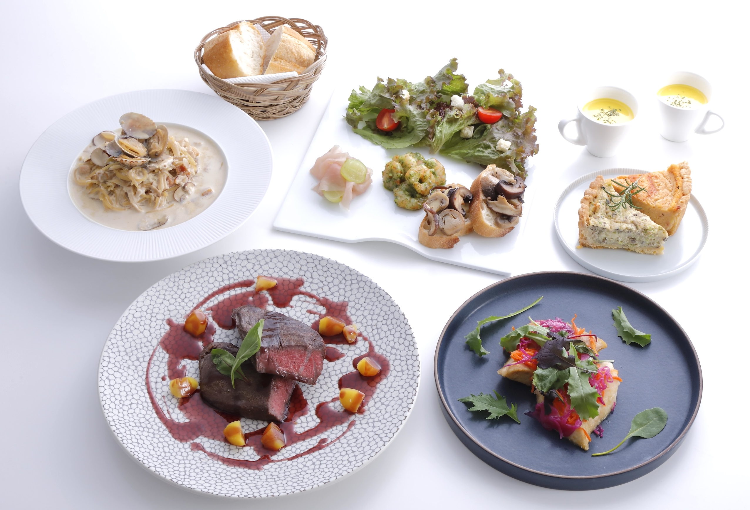 明るいガラス張りの店内は白を基調とした洗練された空間。ふわとろキッシュをはじめ、ハンバーグやチキンなどのランチプレート、TOPスペシャリティのコーヒーや香ばしいクロワッサンなど、香りを楽しむをコンセプトに、リラックスしたご滞在をご提供しています。