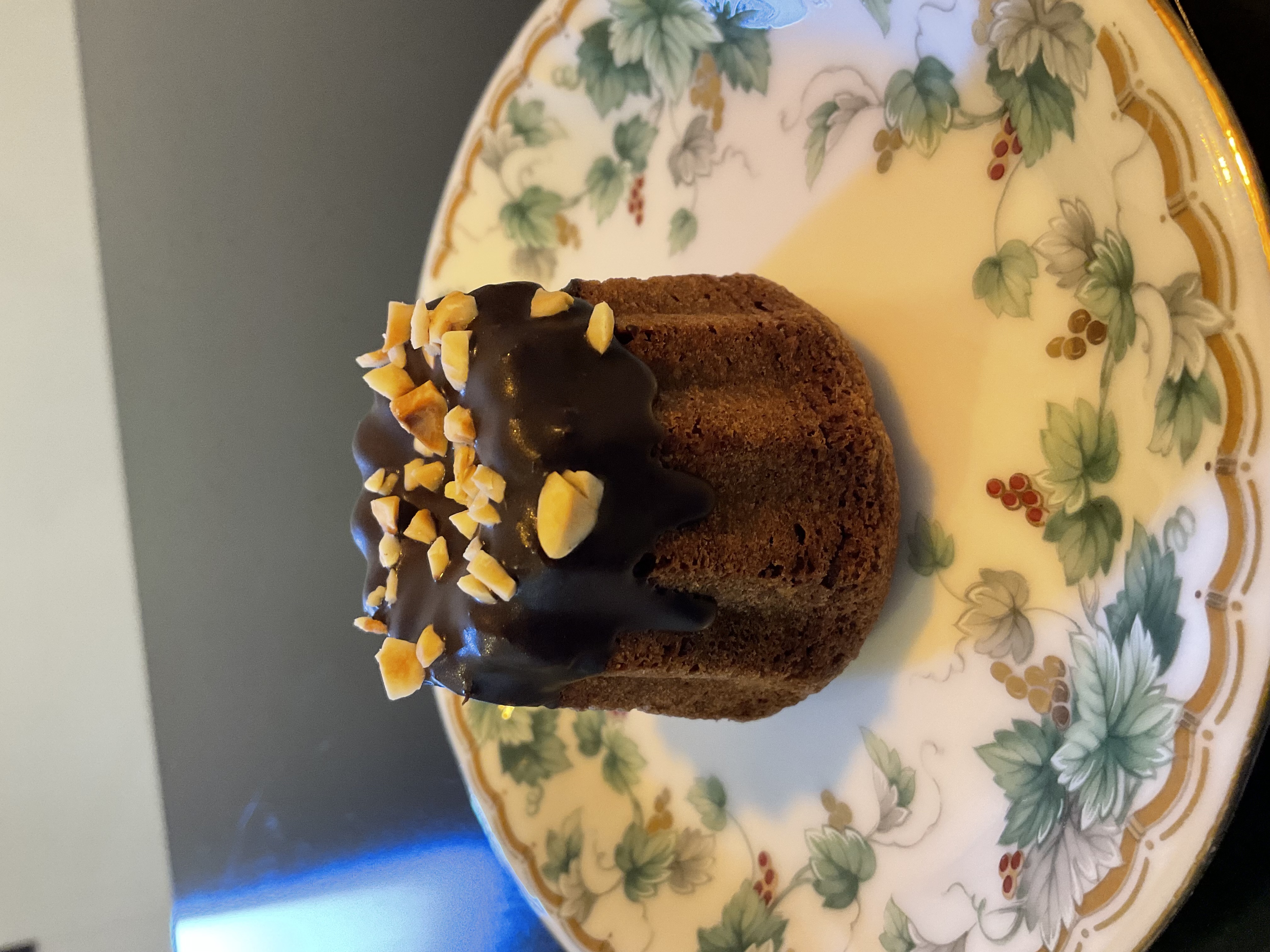 ヘーゼルナッツをたっぷり使用したガトーショコラです。チョコレートでおめかしした可愛いお菓子です
