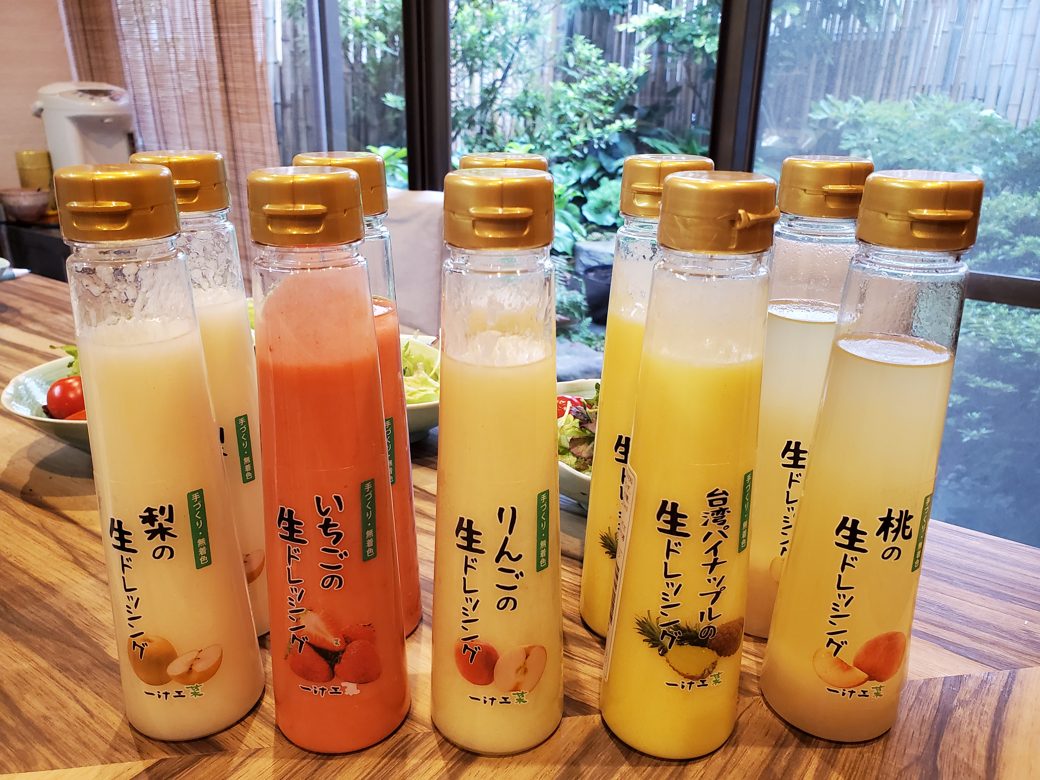 着色料、防腐剤、化学調味料不使用。季節のフルーツのおいしさと栄養がそのまま活きる、自家製ドレッシングです。
