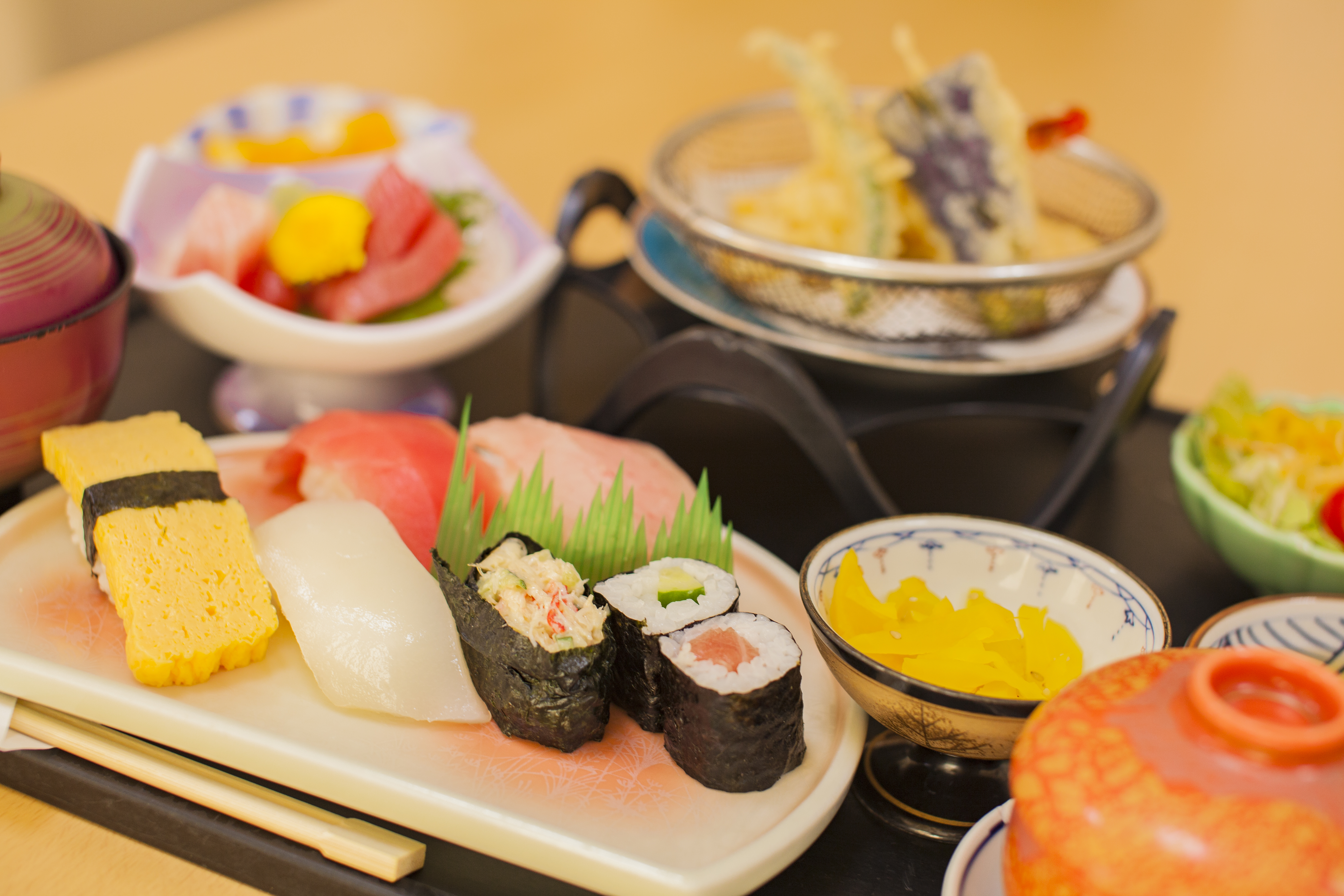 選べるおかず→刺身・フライ・唐揚げ・焼魚など