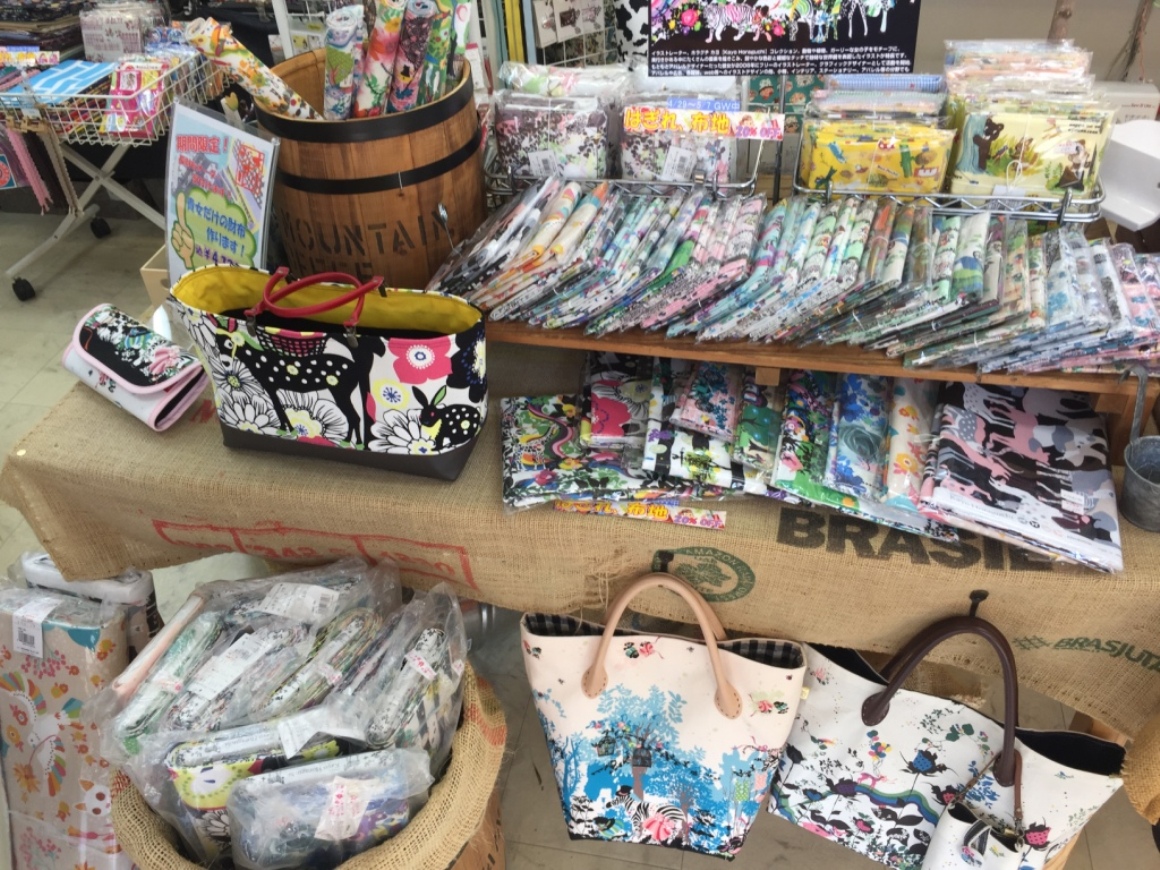 ミシンのほか、生地、はぎれや手芸用品の取扱いもしております。