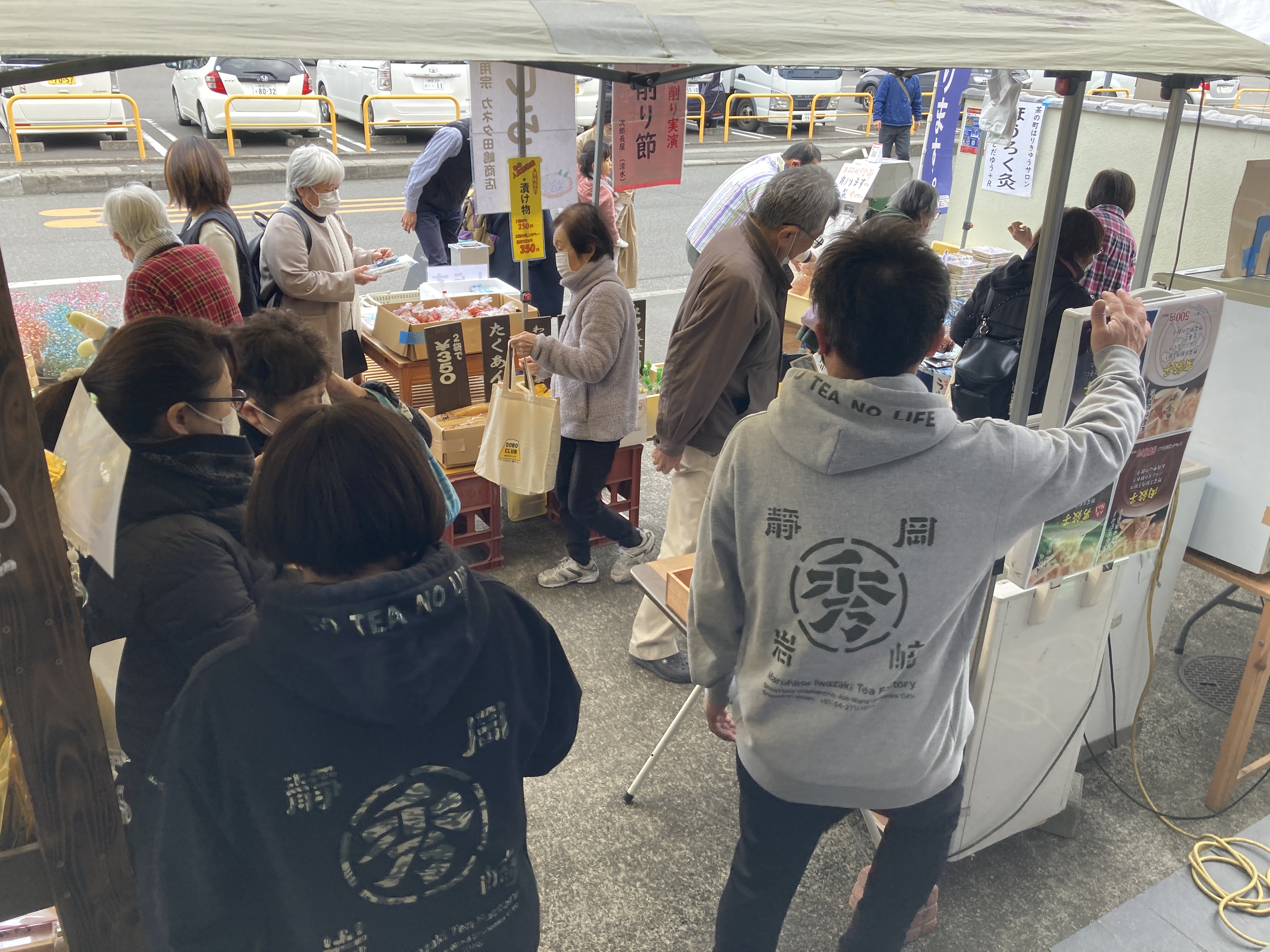 マルヒデ百貨店特製、3種のお茶(静岡茶、掛川茶、合組茶)の詰め放題(コロナ対策で袋に詰めたお茶を用意しています)や、静岡のおいしい食べものを集めた、毎月1日開催の百貨店です。